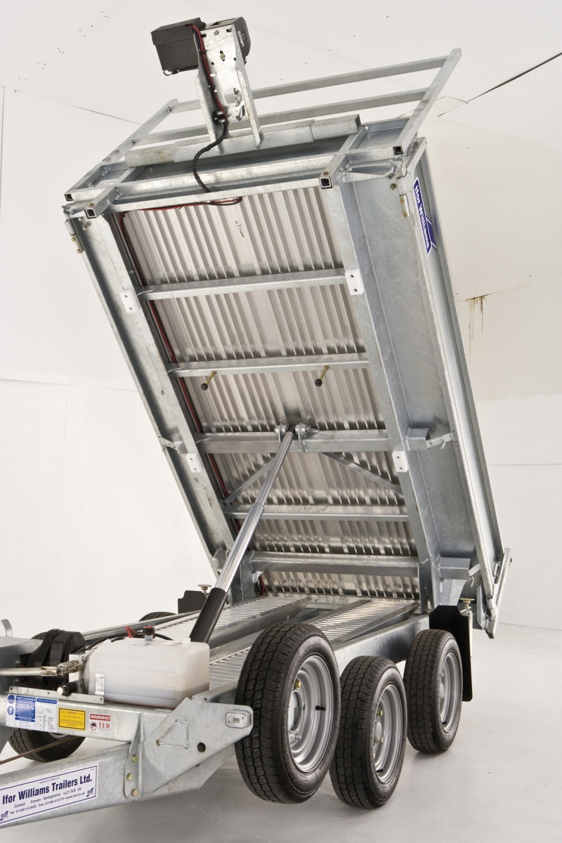 The electrically operated models of the Ifor Williams Tipper Trailer range, the TT3017 (10’ x 5’6″) and TT3621 (12’ x 6’6″) come with a self contained 12v battery. A regular on building sites all over the UK and Europe, an Ifor Williams tipping trailer is the builder’s perfect partner.